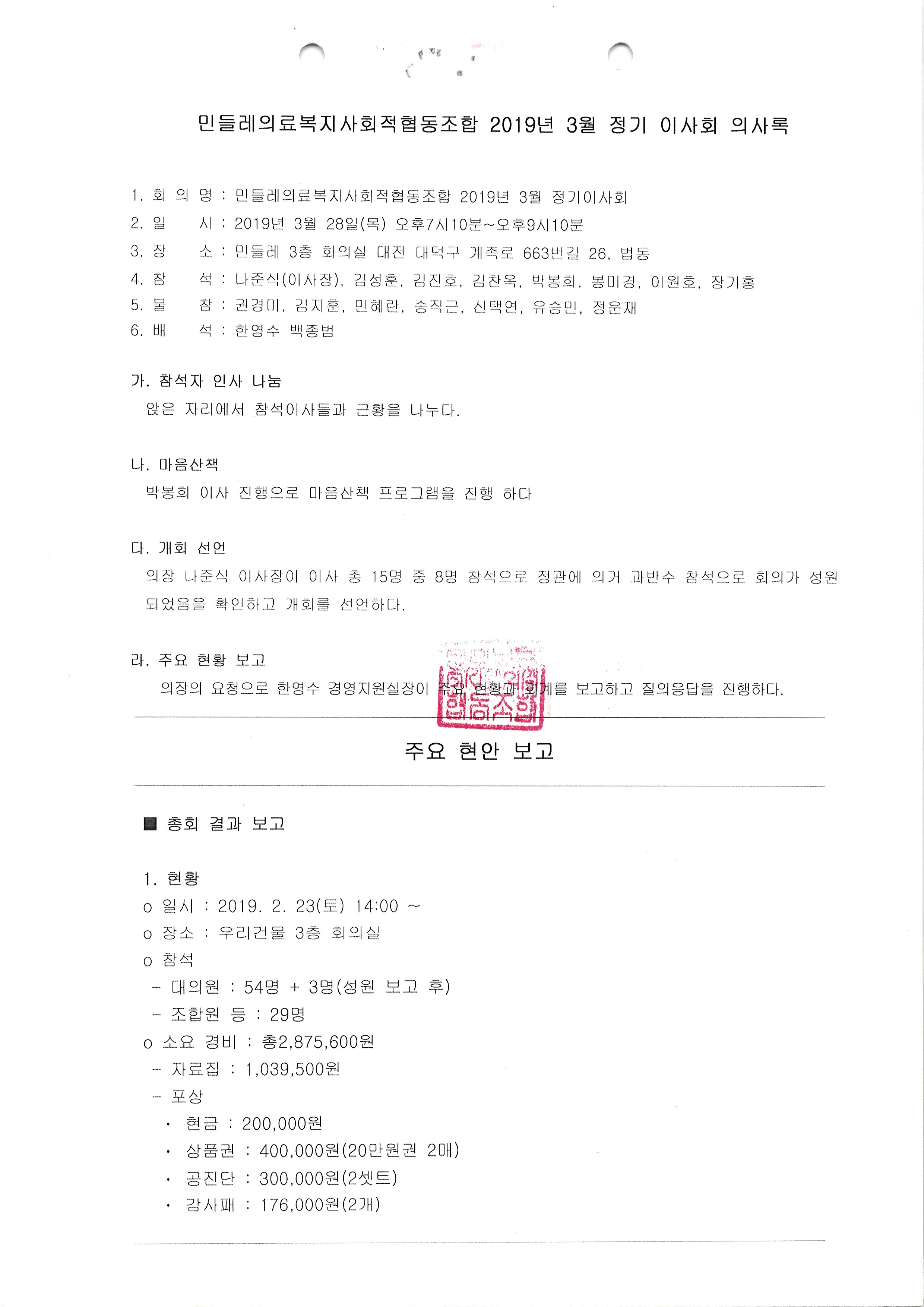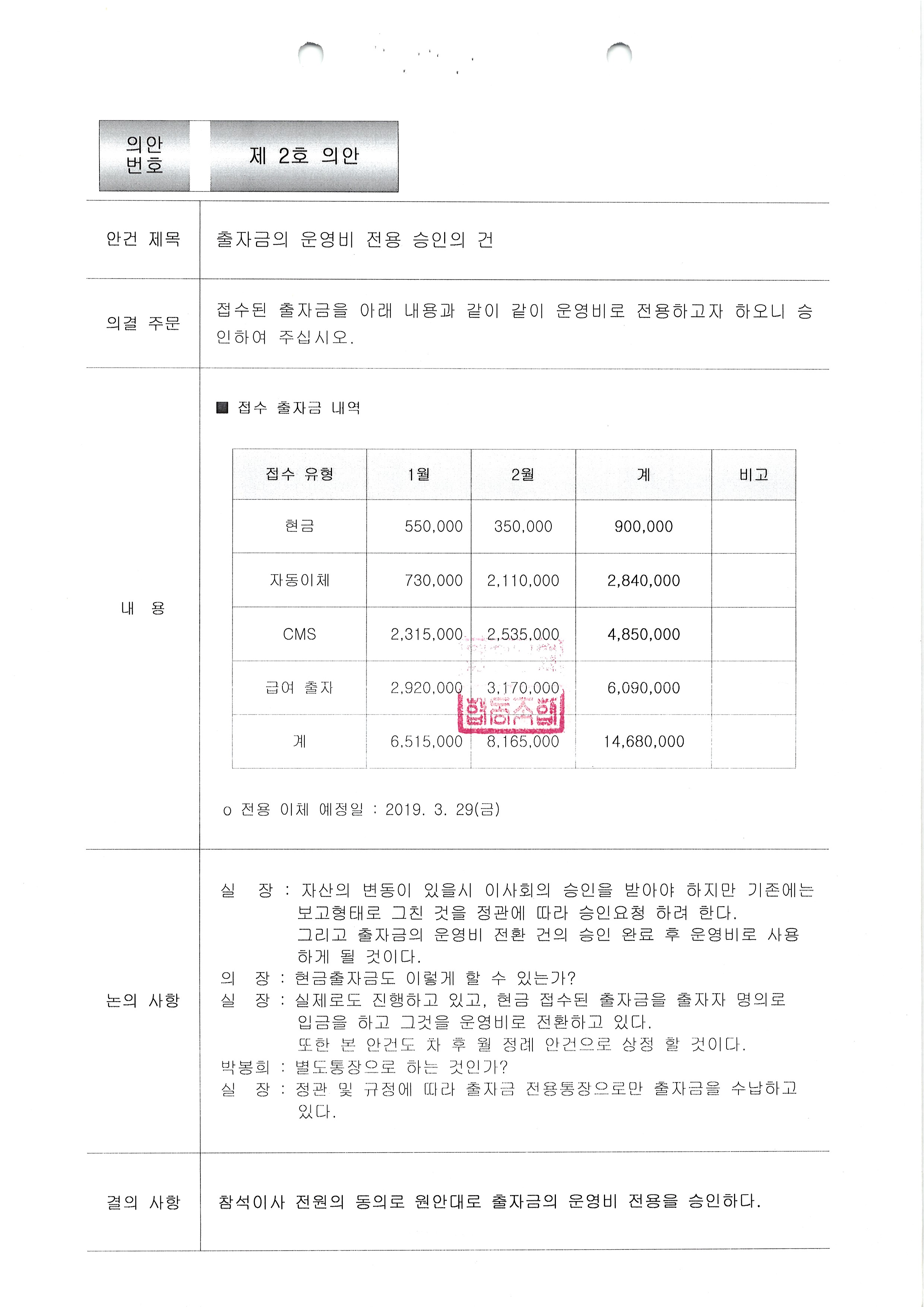 [2019-02] 임시이사회 결과보고