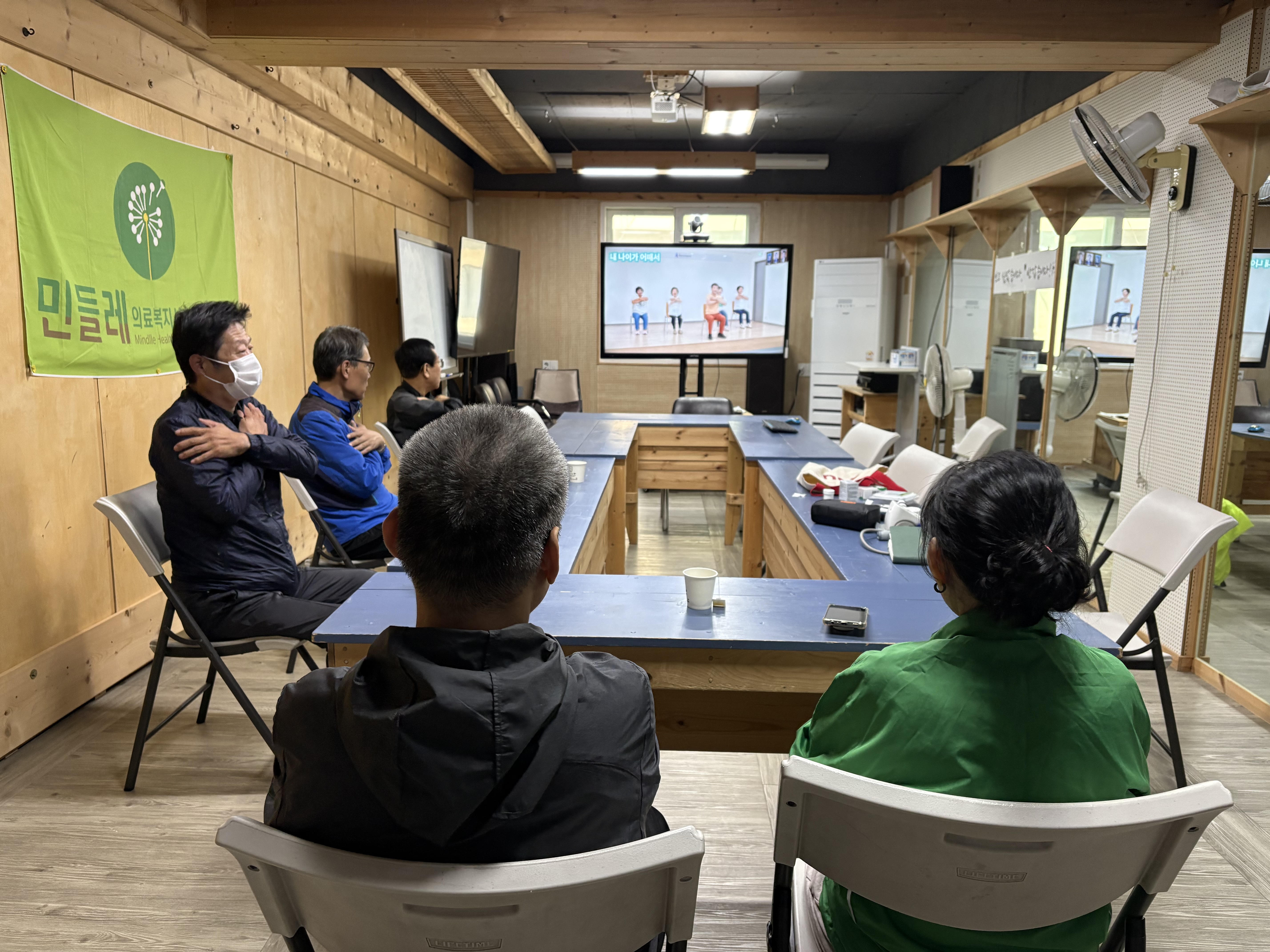 스스로 또는 서로 혈압혈당 측정 및 낙상예방운동, 일상공유 및 다음 일정 계획수립